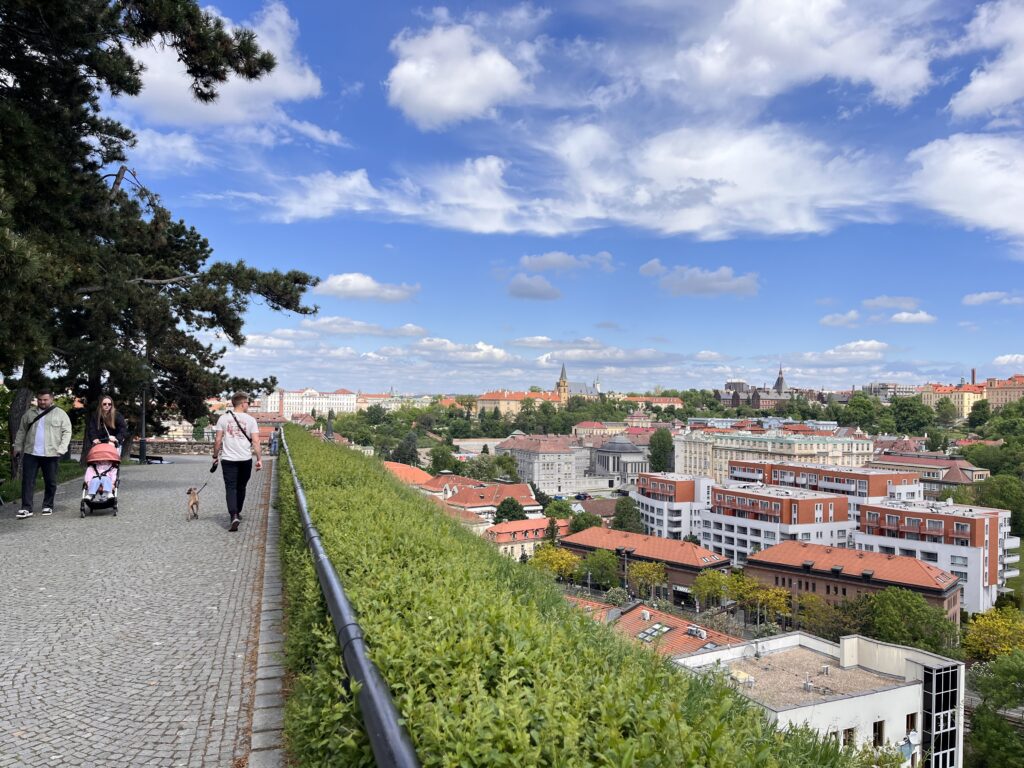 從城市規劃的細節觀察,我們有天散步到波希米亞王國的發源地高堡(Vyšehrad),行經主要幹道時,在幹道下方有寬闊綠地連接地下道,方便行人穿越馬路,這種設計尤其對輪椅使用者、推娃娃車的父母、老人、婦童、自行車騎士都非常友善,人本設計值得讚賞。